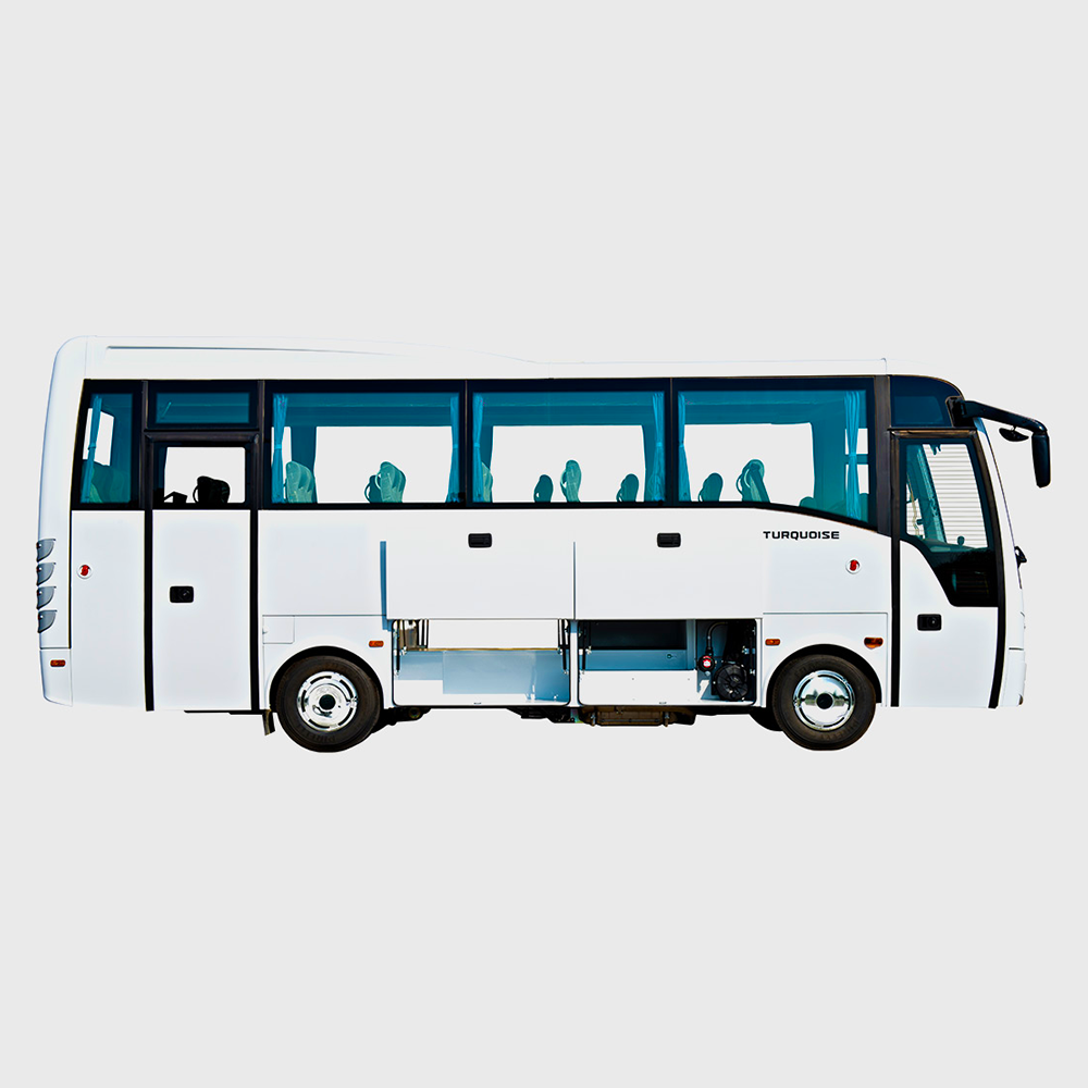 - Turquoise забезпечує приємну подорож водієві та пасажирам завдяки стильному дизайну салону та широкому спектру комфортного обладнання. Поєднуючи переваги мікроавтобуса та повнорозмірного автобуса в розумній концепції «midi», Turquoise стає ідеальним партнером для коротких і середніх поїздок, місцевих перевезень, панорамних турів та екскурсій.