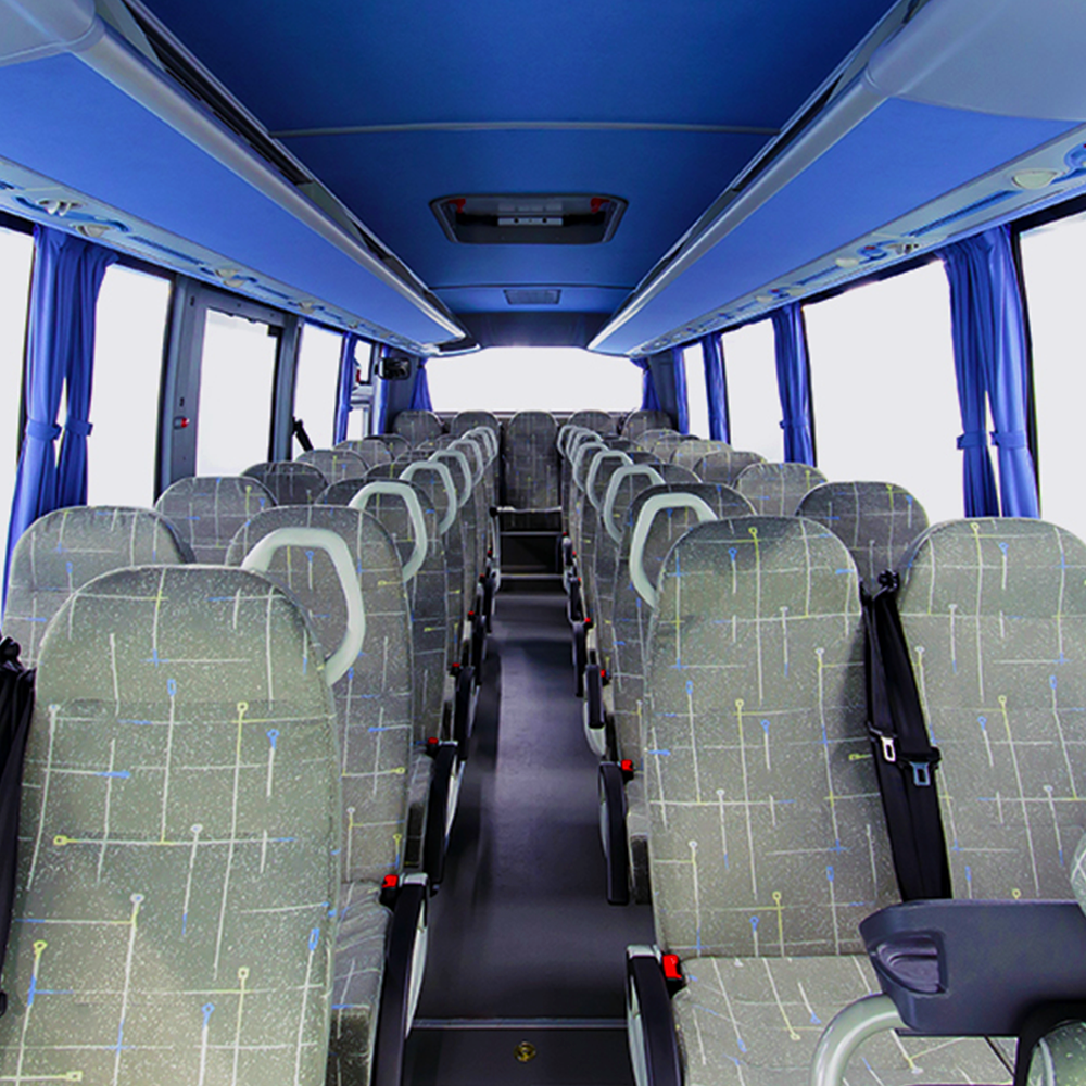 - Міжміська версія Turquoise пропонує подорож як для сидячих, так і для стоячих пасажирів. Скромний дизайн інтер’єру та обладнання Turquoise Interurban забезпечують чудовий досвід приміського транспорту. Крім того, підйомник для інвалідних візків та підйомні двері значно підвищують доступність транспортного засобу. Клієнти Turquoise можуть замовити свої транспортні засоби з опціями механічної підвіски та автоматизованої коробки передач NEES.